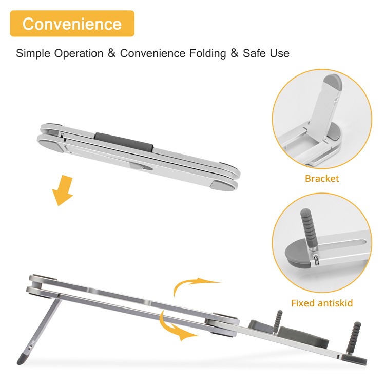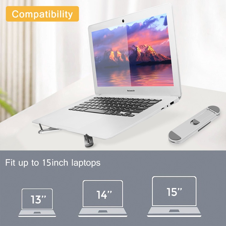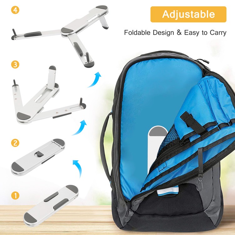 LAPLITE is a foldable lightweight and portable laptop stand. It is designed for ergonomic comfort with adjustable height and angle settings, suitable for laptops and tablets (up to 15.6″). Features include sturdy construction, non-slip pads, and a ventilated design to keep devices cool, ideal for office or travel.