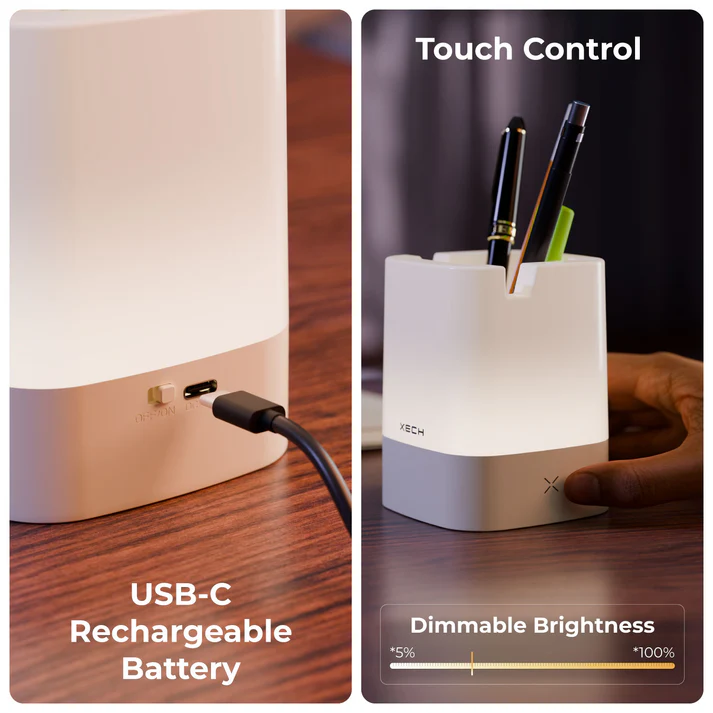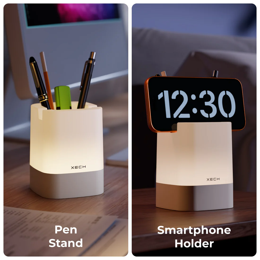 Upgrade your desk with a multifunctional LED ambient lamp that combines lighting, organisation, and phone support in one sleek design. Featuring 3 colour lighting modes, adjustable brightness, and touch controls, this pen stand keeps your stationery organised while providing a comfortable phone viewing angle. Rechargeable and compact, it’s perfect for work desks, study tables, and bedside use.